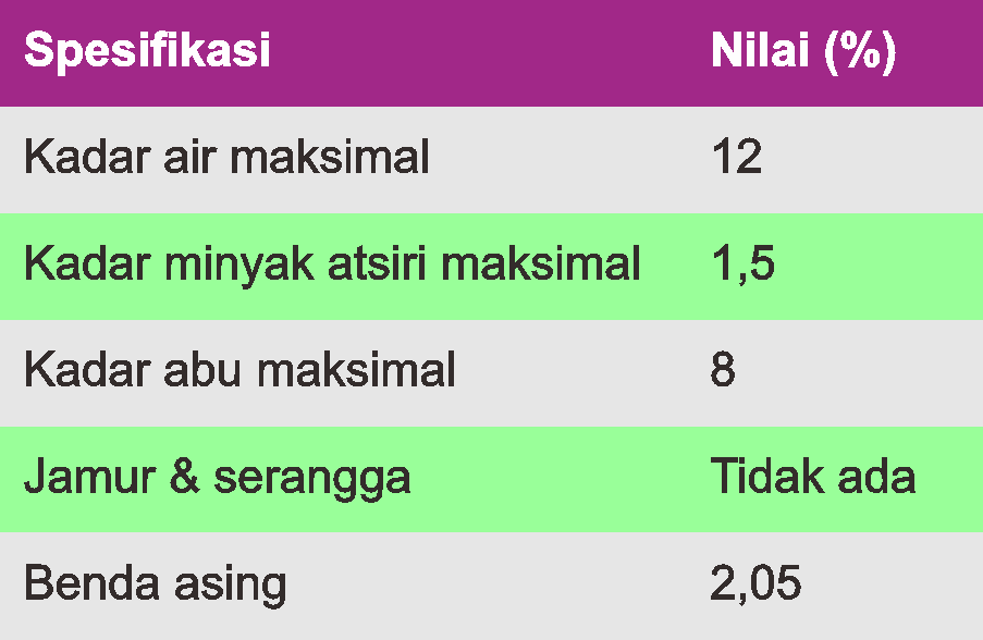 Sebagai acuan, syarat standard simplisia adalah sebagai berikut:
