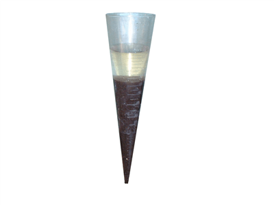 Ambil air kolam sebanyak 1 liter pada bagian tengah kolam. Kemudian endapkan selama 30 menit. Nanti floknya akan mengendap pada bagian dasar imhoff cone.