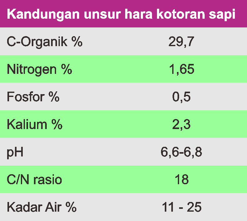 Kandungan unsur hara yang terkandung dalam kompos kotoran sapi adalah sebagai berikut: