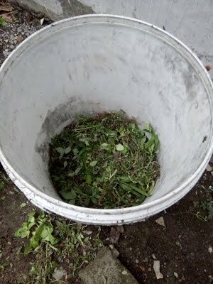 Misalnya kita punya tong atau ember sebagai tempat pembuatan kompos daun.