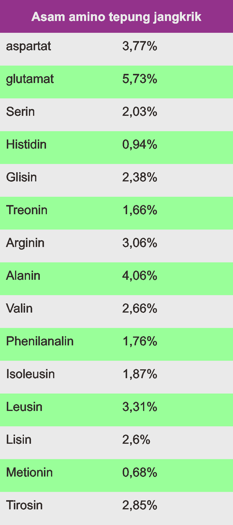 Di awal tadi sudah saya sebutkan kalau tepung jangkrik ini memiliki susunan asam amino yang cukup lengkap. Ini saya berikan daftar asam amino yang terkandung dalam tepung jngkrik.