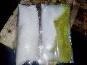 Dalam satu kemasan itu, isinya ada dua pack pupuk. Satu berwarna putih dan satunya berwarna putih kehijauan.
