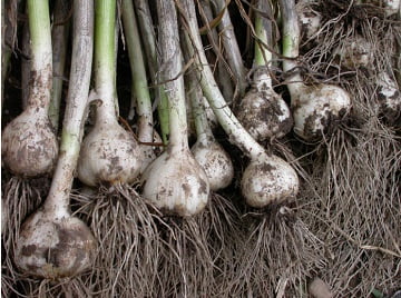 Bawang putih bisa dipanen di usia antara 90 – 120 hari, tergantung varietasnya. Tanda bawang putih siap panen adalah warna daunnya menguning dan tangkai daunnya pun terasa keras. Cara panen bisa dilakukan dengan mencabut tanaman secara langsung.