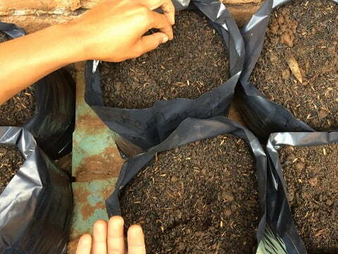 Selanjutnya untuk isi polybagnya, media tanam. Kalau ada komposnya malah bagus.