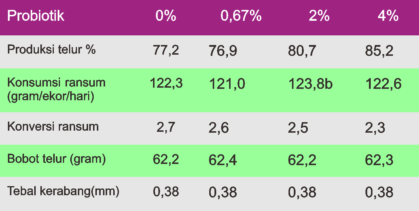 Penggunaan manfaat probiotik sudah banyak diteliti. Hasilnya memang memberikan hasil yang lebih bagus untuk performa produksi ayam petelur.