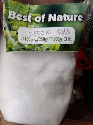 One teaspoon of Epsom salt, dissolved in 1 liter of clean water.