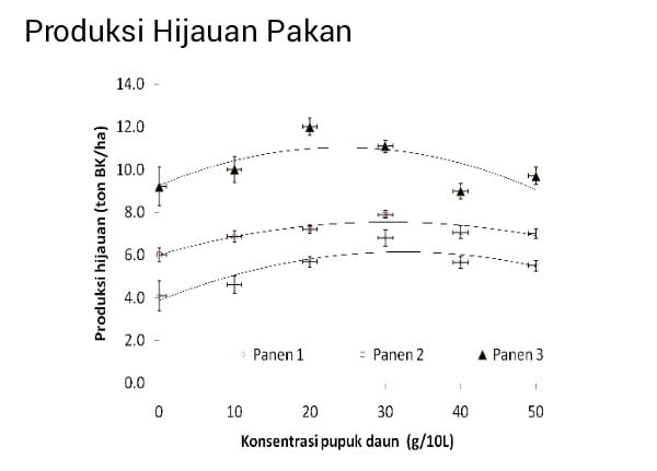The figure above is a graph of the relationship between leaf fertilizer concentration and the amount of forage production of indigofera leaves in dry weight.