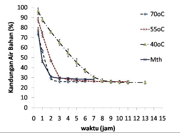 Besides that, some are dried with an oven at 40 degrees Celsius, 55 degrees Celsius and 70 degrees Celsius.