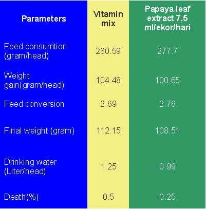 Even the researchers dare to conclude that this papaya leaf extract dosage can replace the use of vitachick.