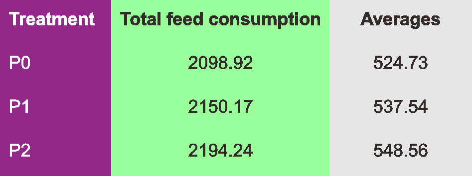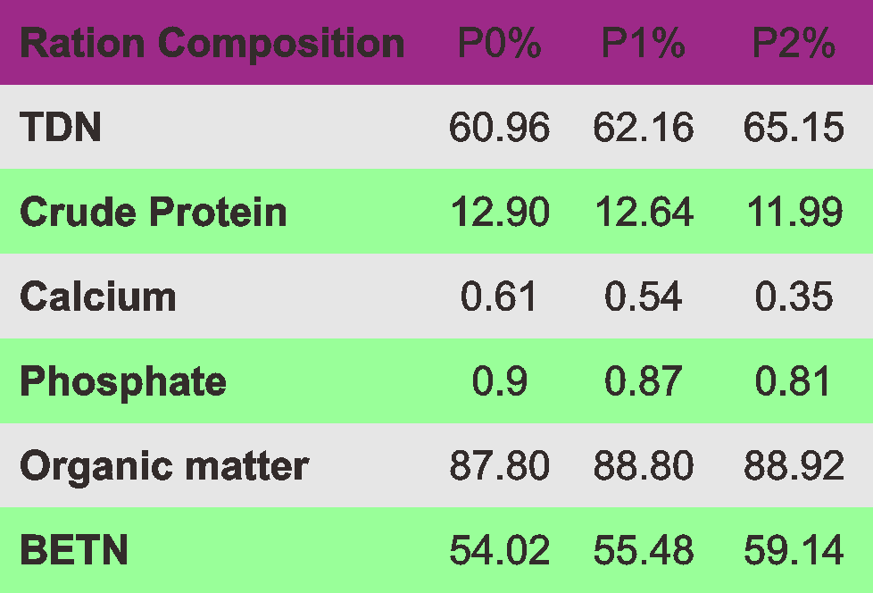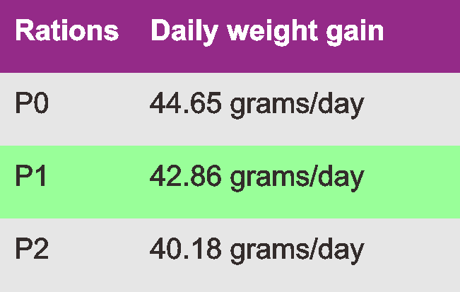 PO is the first ration, P1 is the second sheep ration, and P2 is the third ration of sheep feed.