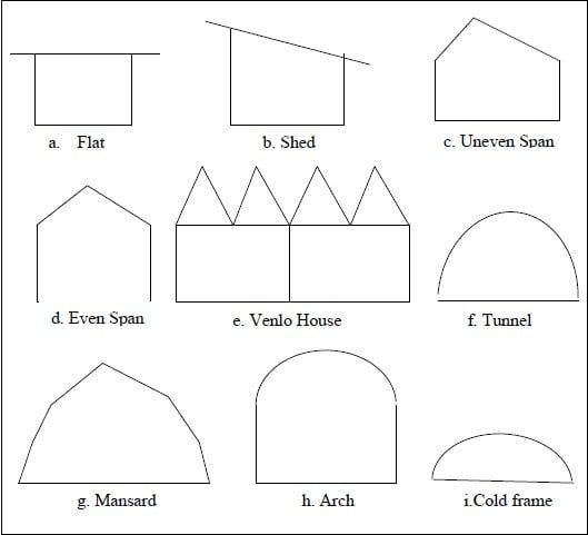 Greenhouse mempunyai banyak macam desain. Diantaranya seperti pada gambar ini.