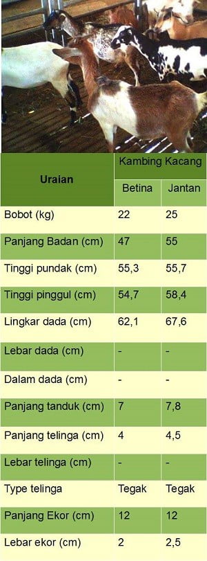 Ciri-ciri dari kambing kacang ini adalah: