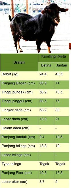 Ciri – ciri dari kambing kosta ini bisa dilihat pada tabel di bawah ini.