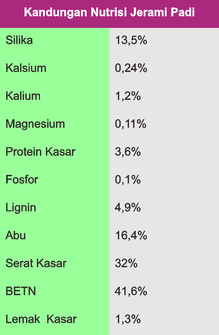Kandungan nutrisi dari jerami padi sangat rendah. Nilai kandungan nutrisinya dapat dilihat pada gambar di bawah ini.[1]