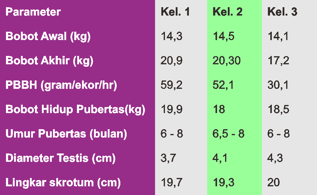Pakan yang ada jerami fermentasinya, perbedaan antara berat anak jantan dan betina lebih besar. Sedangkan pakan hijauan beratnya hampir sama.