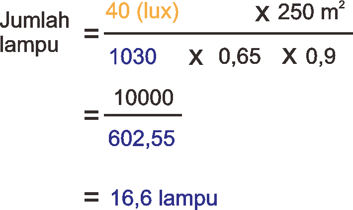 Untuk menentukan jumlah lampu, bisa dihitung dengan menggunakan rumus di bawah ini.