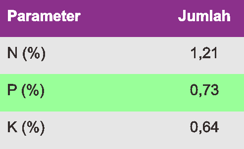 Hasilnya kandungan unsur haranya menurut penelitian [3] adalah seperti ini.