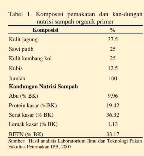 Dengan komposisi limbah seperti pada gambar di analisis juga kandungan nutrisinya.