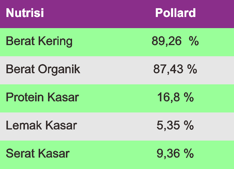 Kandungan nutrisi pollard.
