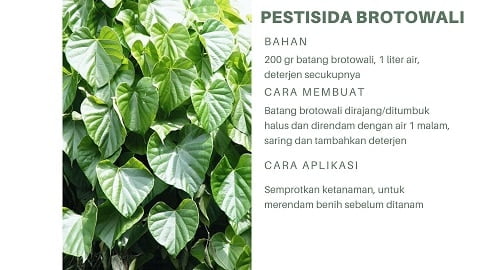 Cara membuat : Batang brotowali dirajang/ditumbuk halus dan direndam dengan air 1 malam, saring dan tambahkan deterjen