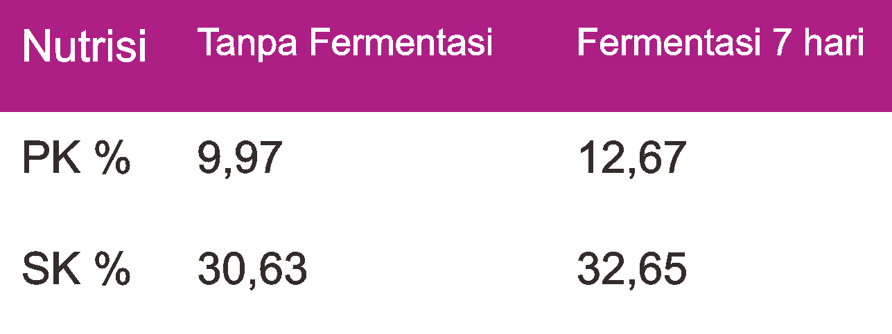 Setelah difermentasi, nilai protein kasar dan serat kasarnya meningkat. Kalau protein meningkat tidak masalah ini lebih baik.