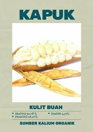 Kapuk mengandung beberapa senyawa alkali yang bermanfaat bagi kehidupan. Abu kulit buah kapuk mengandung senyawa Kalium Karbonat (K2CO3) 50,78 %, Natrium Karbonat (Na2CO3) 26,27%, dan Natrium Hidroksida (NaOH) 4,37%.