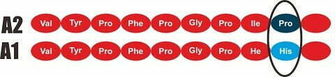 Perbedaan antara beta kasein A1 dan A2 ada pada dua bagian.